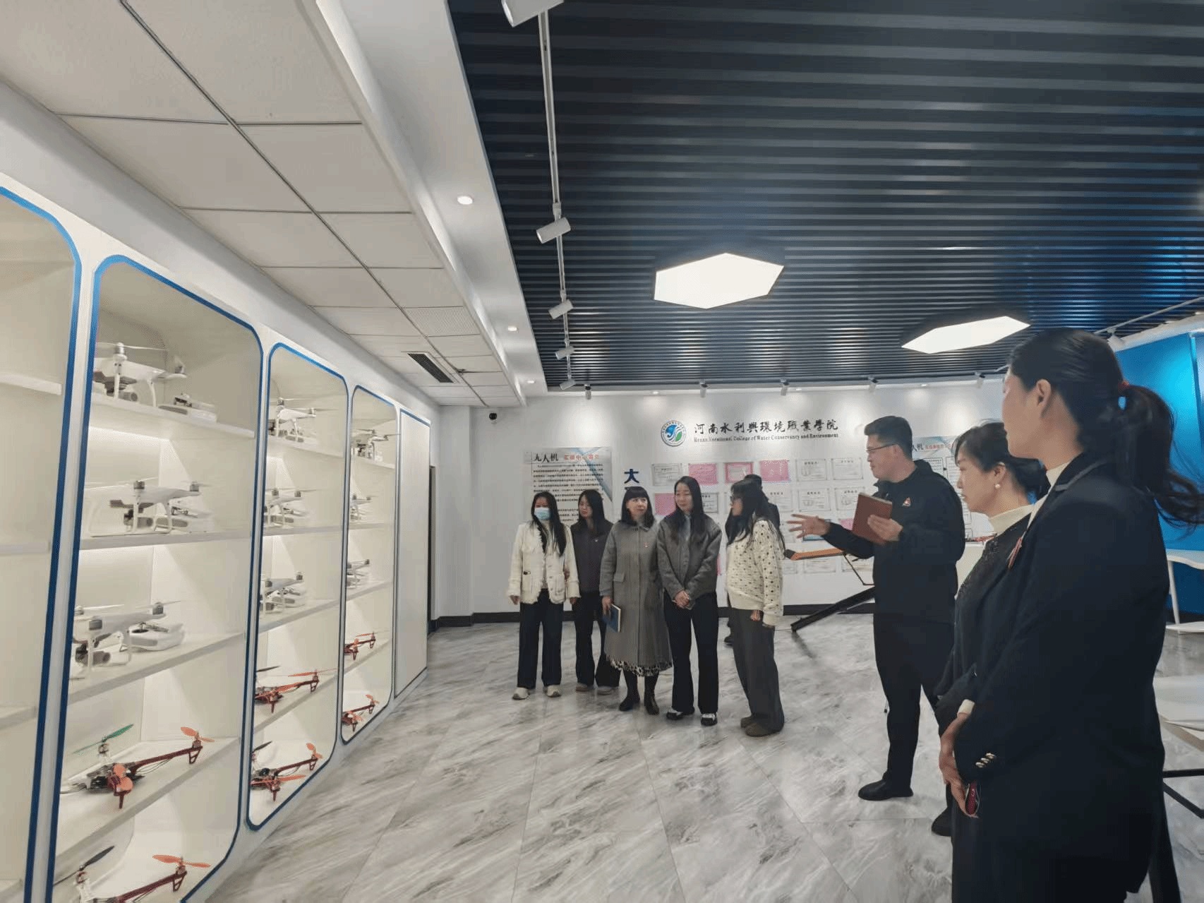 在实地研学环节,党员教师们走进测绘地理信息学院实训场所,实地参观了测量实训基地和无人机实训基地。测绘地理信息学院李春锋介绍,“这里不是冰冷设备的陈列室,而是践行‘为党育人、为国育才’的生动课堂。”实训场所贯穿了从“动手”到“入心”的工匠精神涵养、从“模拟”到“共情”的责任意识建立、从“技术”到“使命”的家国情怀升华,让学生在技术训练中潜移默化地接受价值引领。
