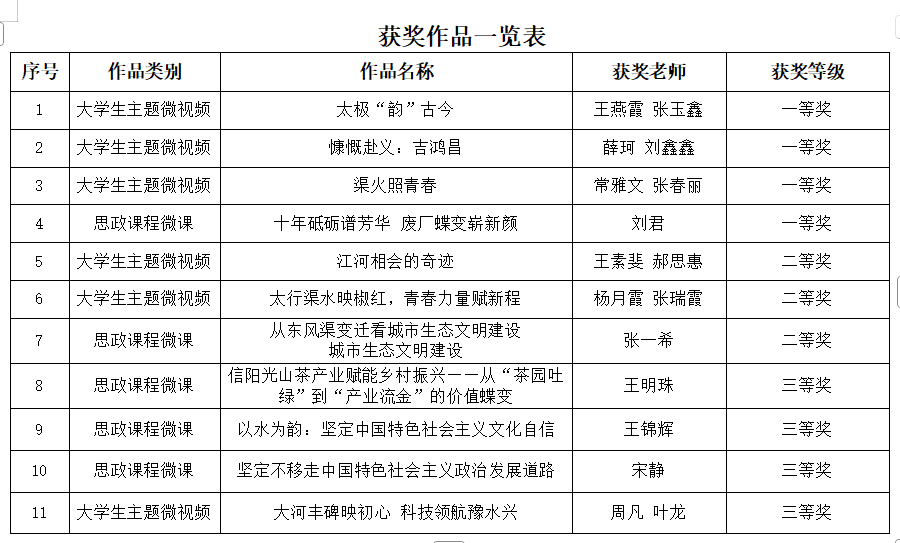 近日,由河南省社科联、共青团河南省委、河南省高等教育学会联合主办的2025年度河南省大思政微课(微视频)征集活动评选结果正式公布。我校老太阳集团8722教师精心准备、成果丰硕,共荣获一等奖4项、二等奖3项、三等奖4项。获奖作品紧扣时代主题,将理论阐释、红色资源、中原文化与新媒体教学深度融合,主题鲜明、制作精良、育人效果突出,获得评审专家高度认可,充分展现了学院在思政课教学创新、数字育人资源建设方面的过硬实力与显著成效。