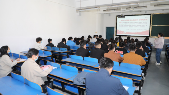 思政教学部副主任郝思惠从机构设置和人员配置,思政课建设主要成绩和经验,对标示范性马院建设标准情况,存在的问题及原因分析、未来规划,以及开好讲好新课程的对策建议五个方面进行了详细汇报。