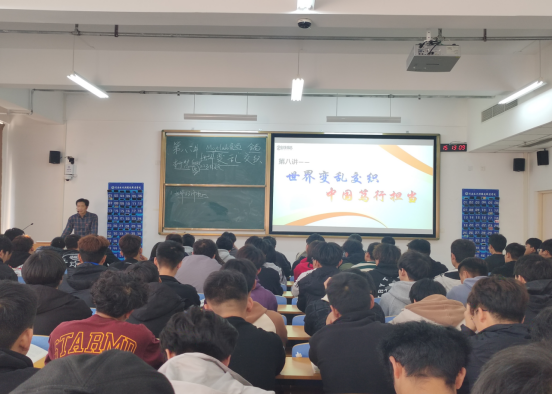 11月21日下午,校党委书记李广慧为土木工程系2023级建管1、2班学生讲授形势与政策课。