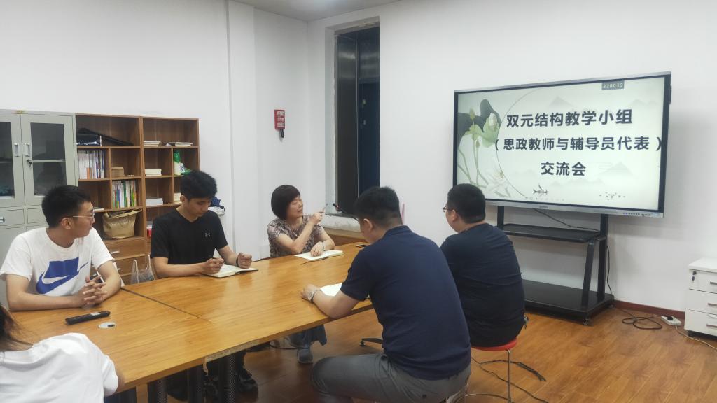 2021年6月14日下午,在思政部的大力支持和配合下,校内重点项目《“三全育人”模式下思政课教学改革中组建“双元结构教学小组”的研究与实践》课题组,在北教510会议室召开了“思政教师与辅导员代表交流会”,共同探讨了“三全育人”模式下思政课教学改革存在的困难和问题,力求通过交流增强双元结构教学小组的凝聚力,合力推进思政育人工作。课题主持人刘晓丽、信息工程系副书记刘彬、思政部办公室主任邵琳、思政部毛中特教研室主任刘君、全体思政课教师及各系辅导员代表参加交流会。