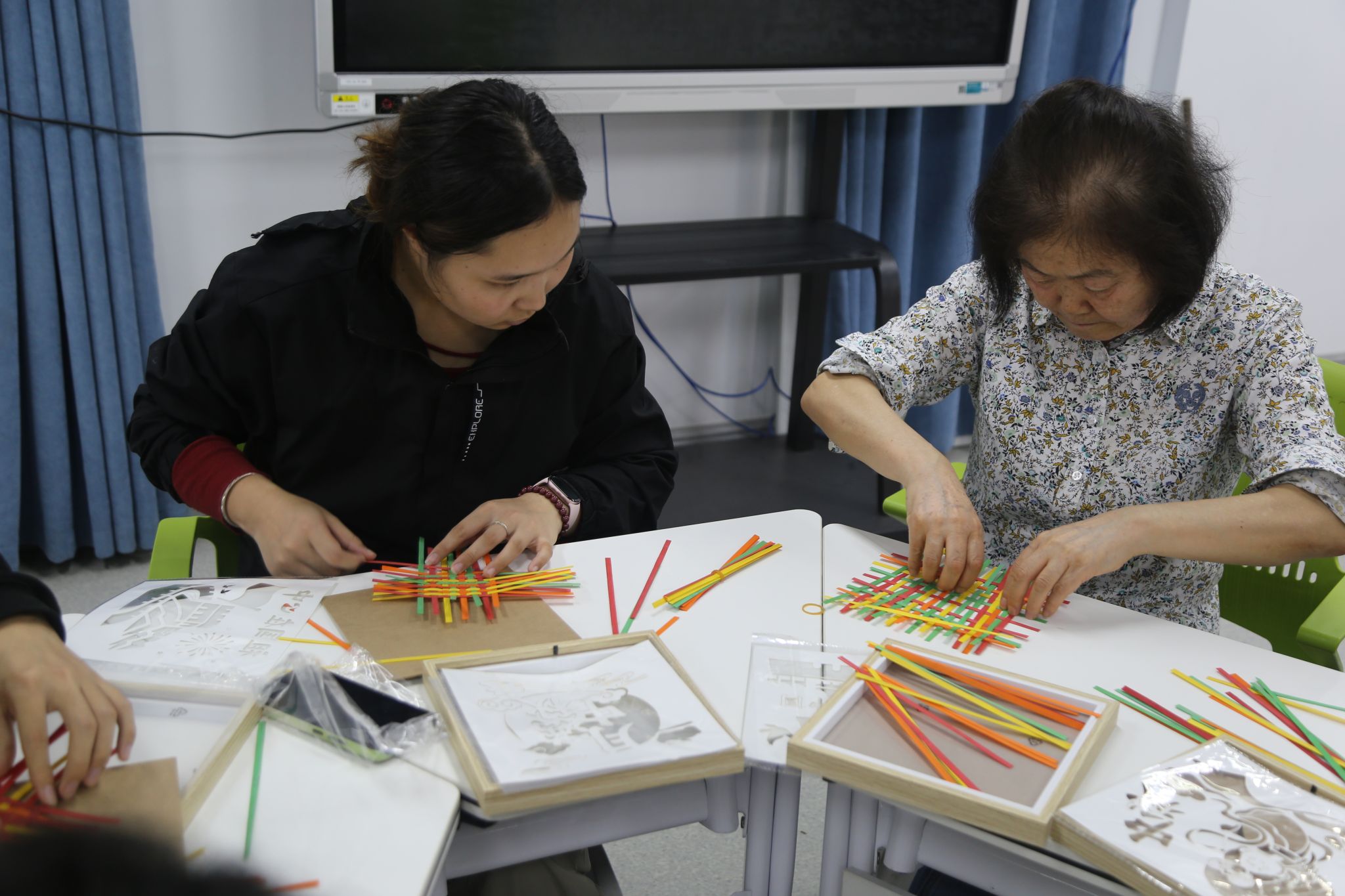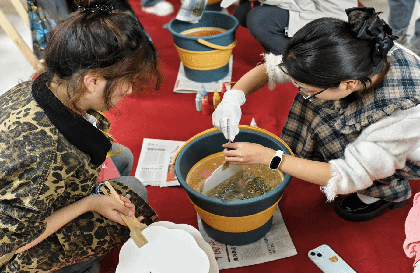 “中药香氛画”“竹编”二个非遗手工实践体验在花园路校区同时开展。